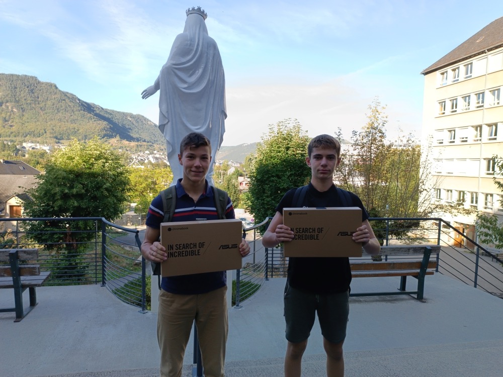 Les élèves de seconde G.T et professionnelle ont reçu leur nouvel outil de travail lors de la distribution organisée par le Lycée Notre Dame : le Chromebook. Il va les accompagner tout au long de leur scolarité dans l’établissement jusqu’au baccalauréat. Ils en deviendront ensuite l’unique propriétaire.
